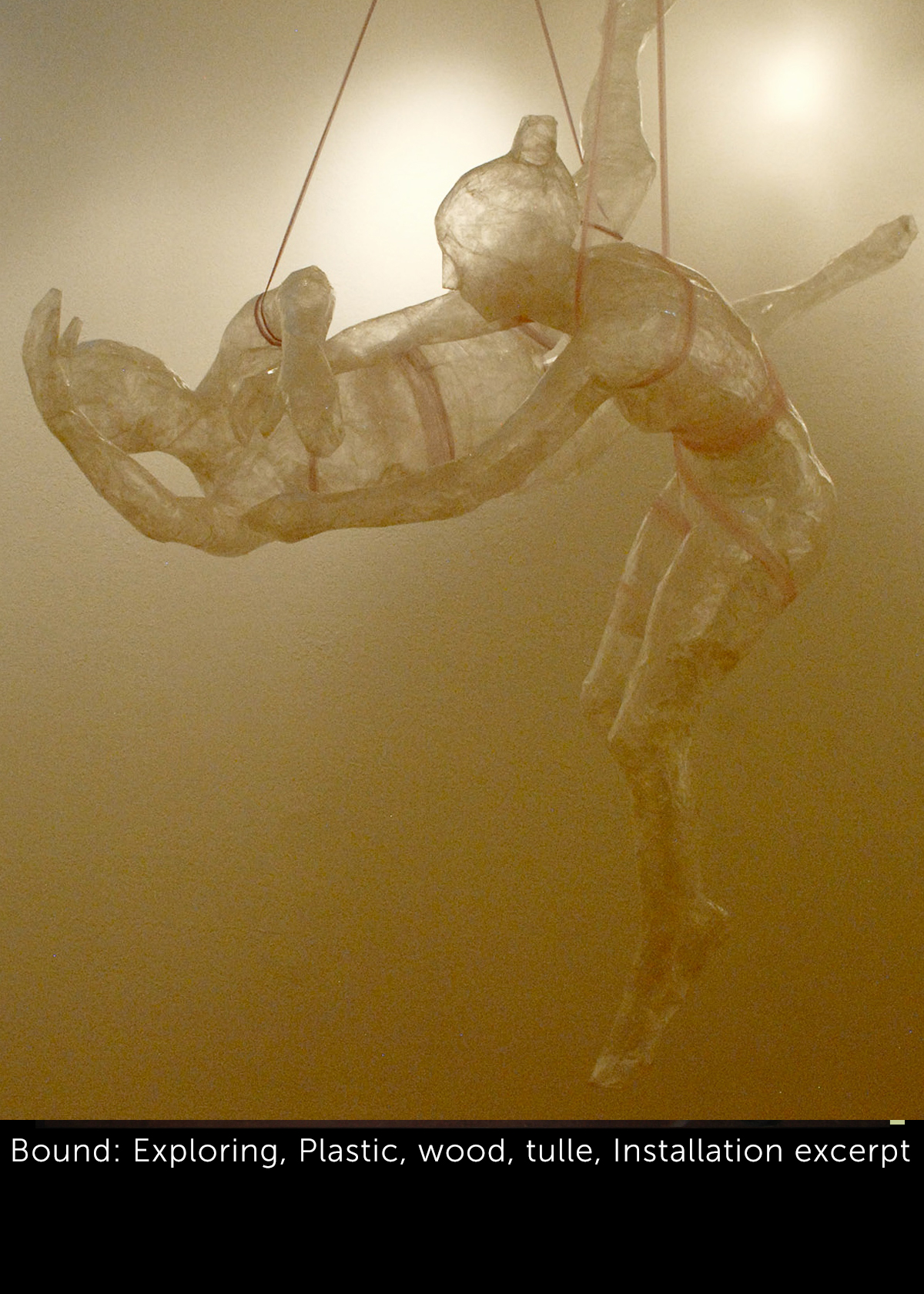 Motivation: Amazingly, the word “Bound” has meanings as disparate and contradictory as “constrain” and “leap.” Through gestural language, this installation explores this duality.