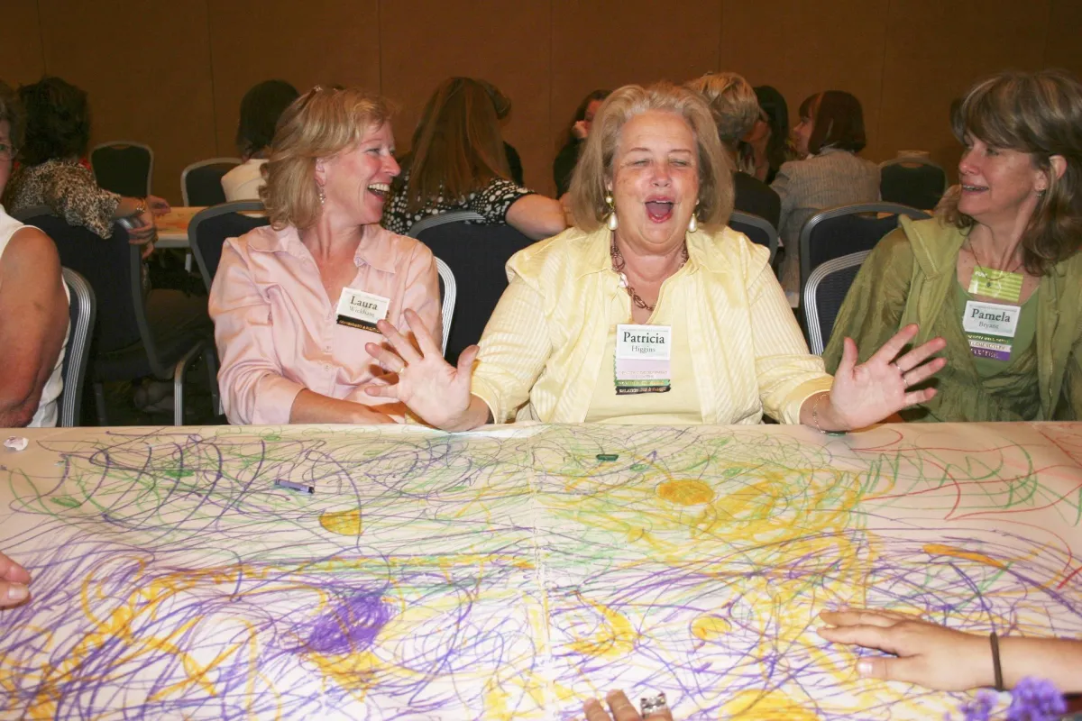 Organizations often place these creations in their boardrooms, or in a busy hallway so that workshop participants can continue to connect with what they learned and share their insights with co-workers.