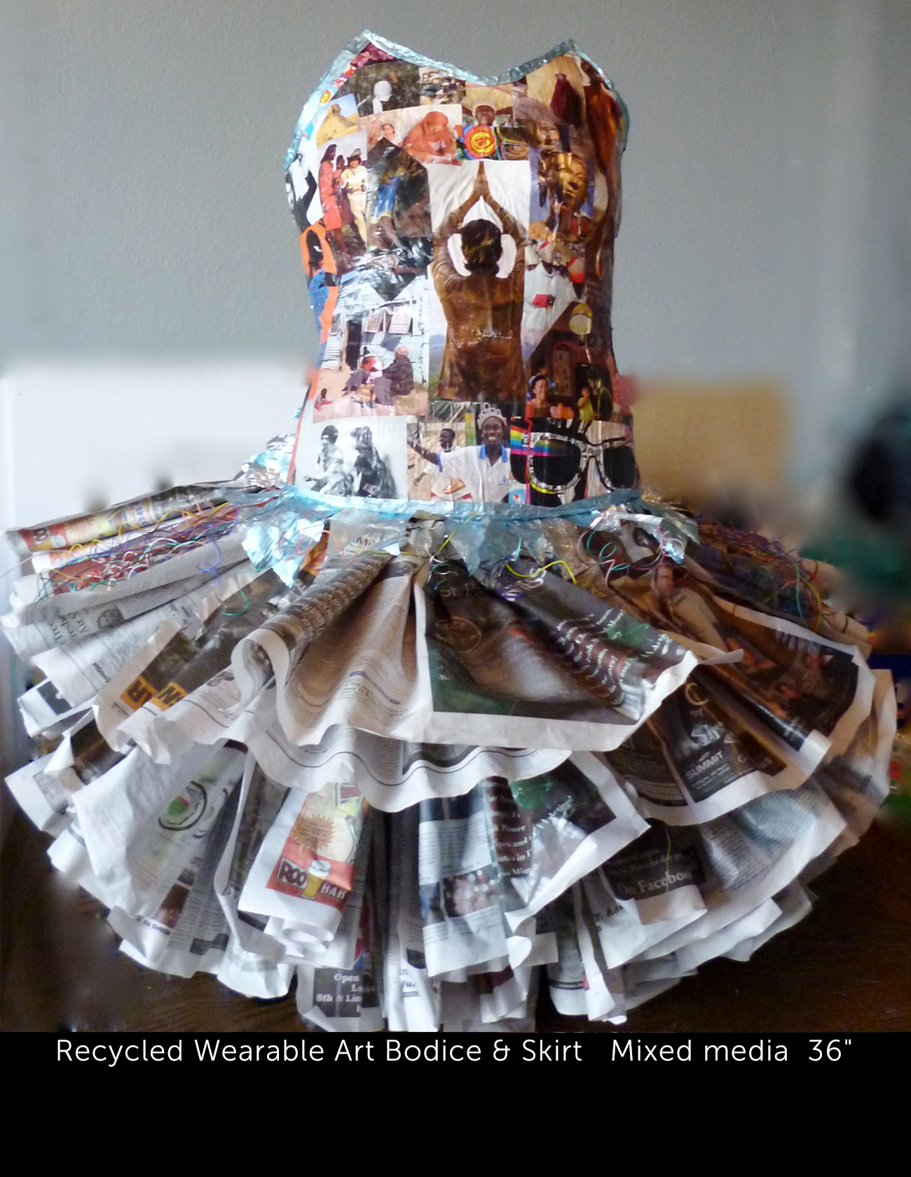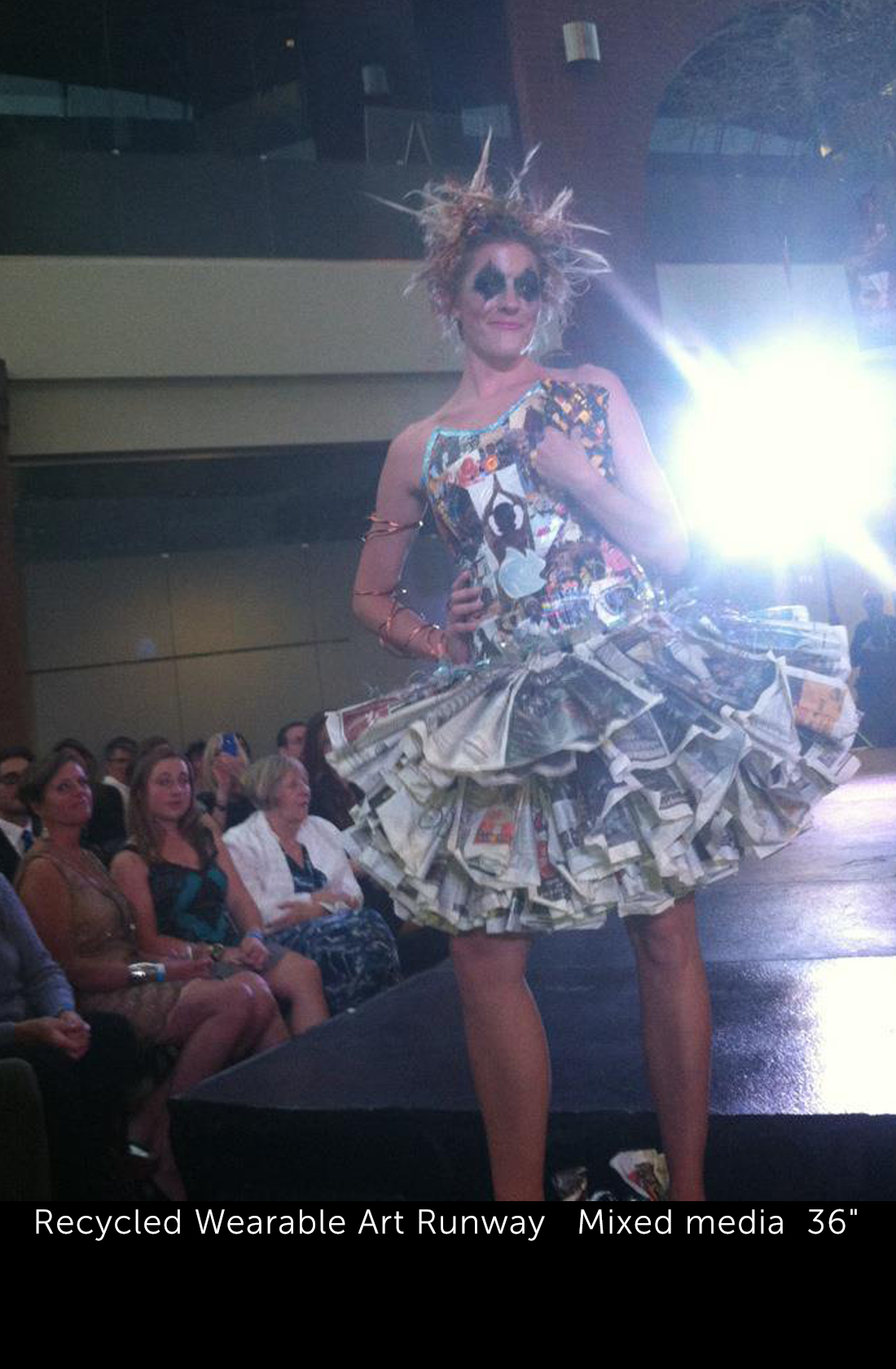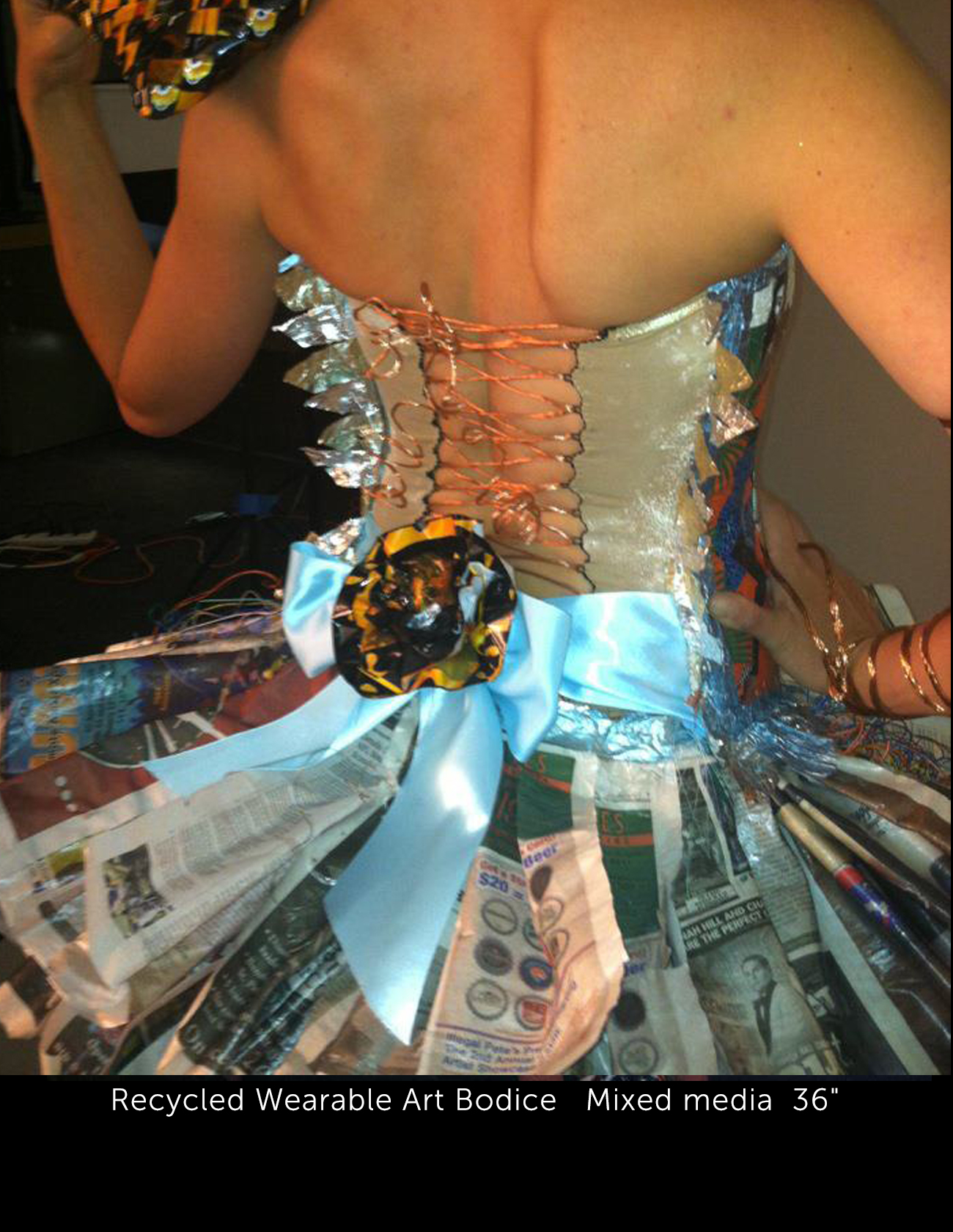This benefit for Trails and Open Space specified that 80% of the entries be made from recycled materials. A group of us from Core Power Yoga studio collaborated on a piece made from newspapers, magazines and electrical wire.