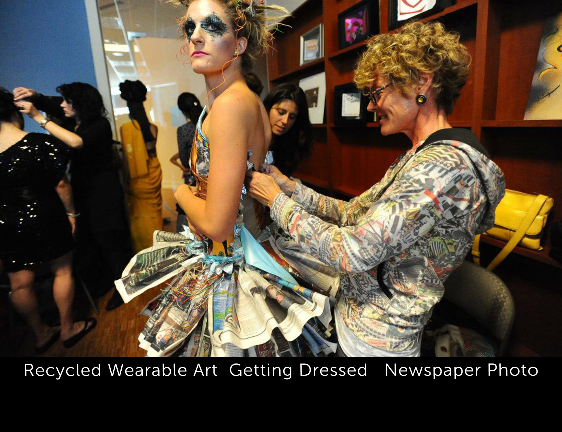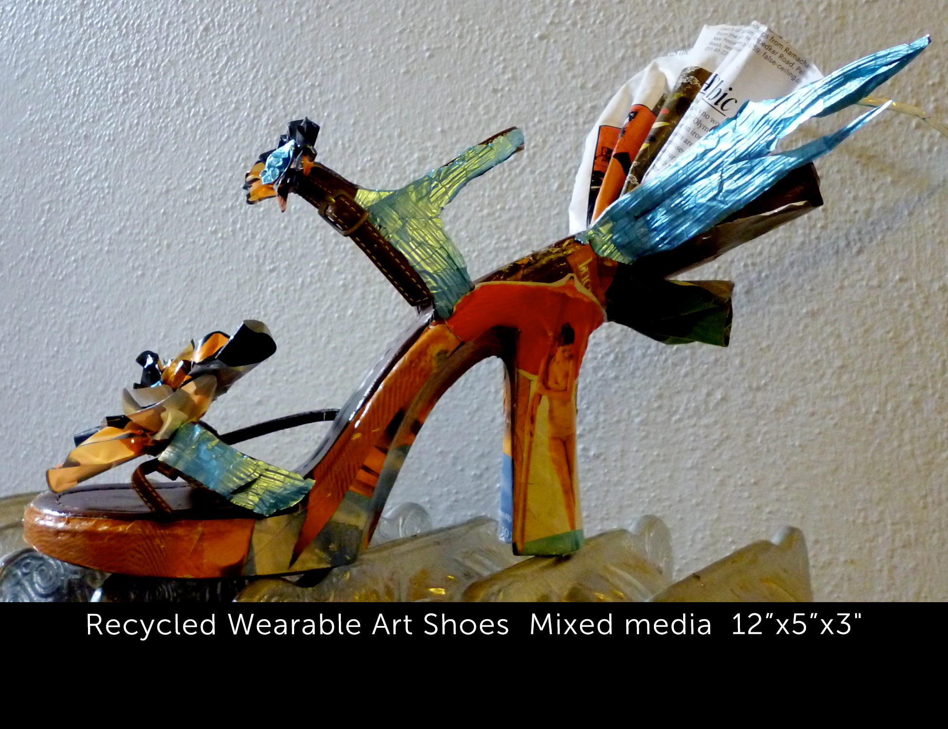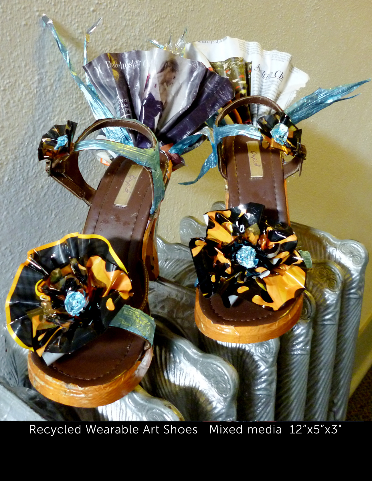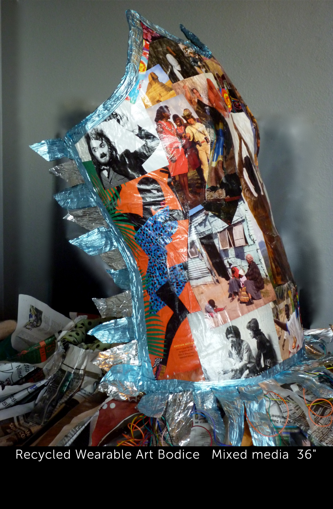 This benefit for Trails and Open Space specified that 80% of the entries be made from recycled materials. A group of us from Core Power Yoga studio collaborated on a piece made from newspapers, magazines and electrical wire.
