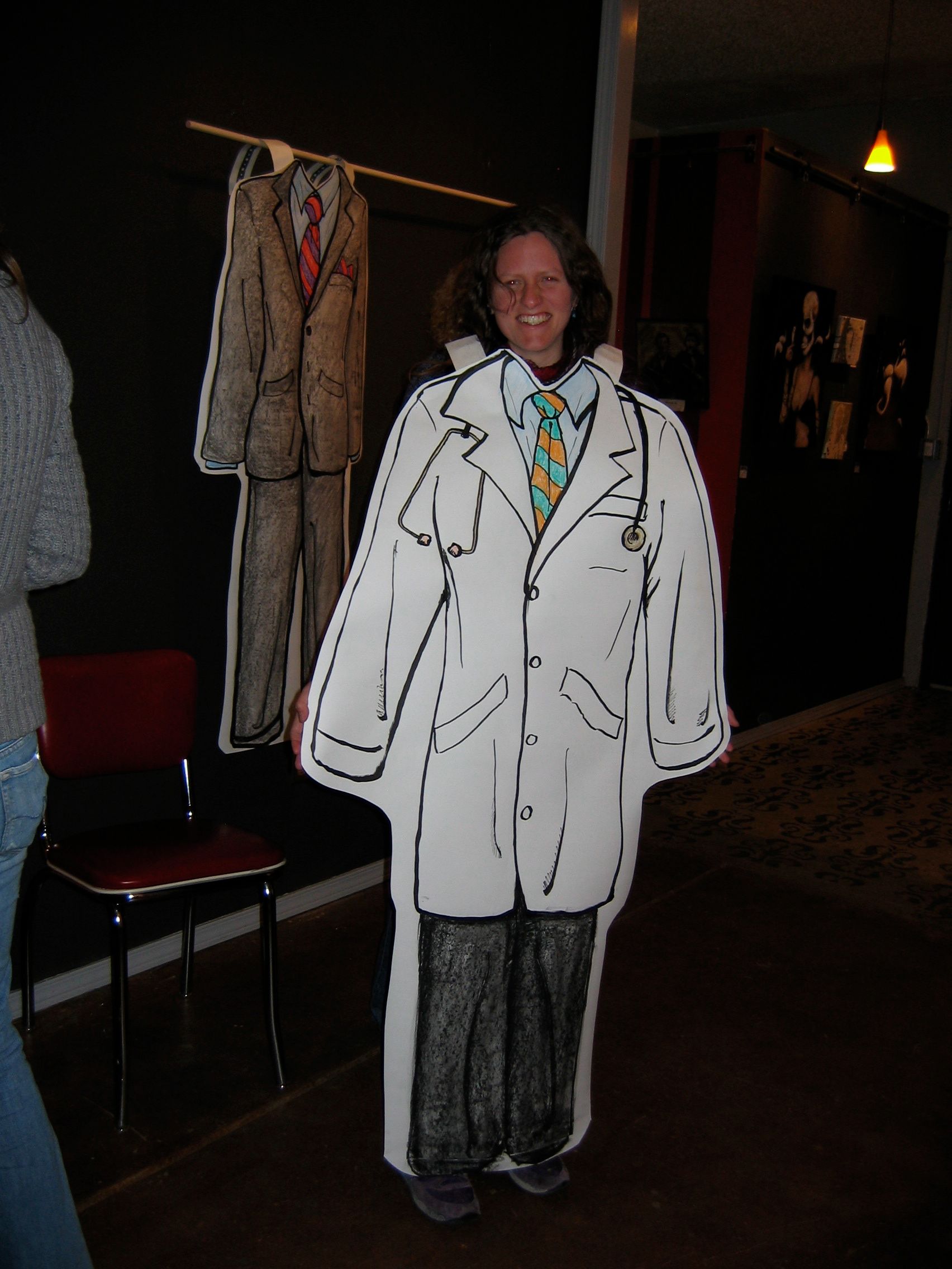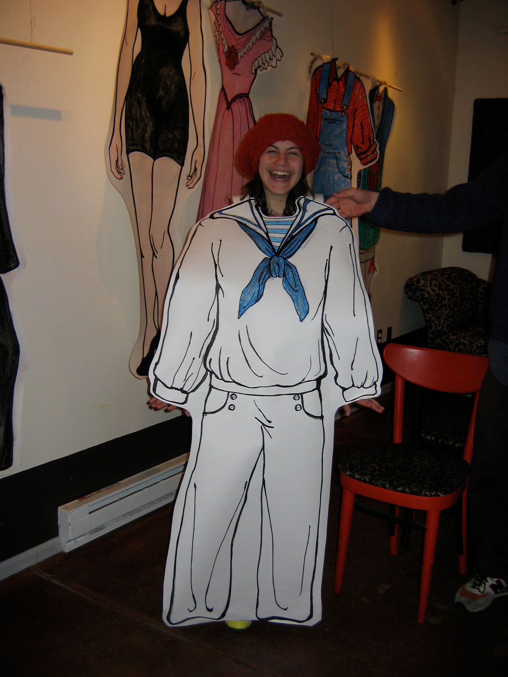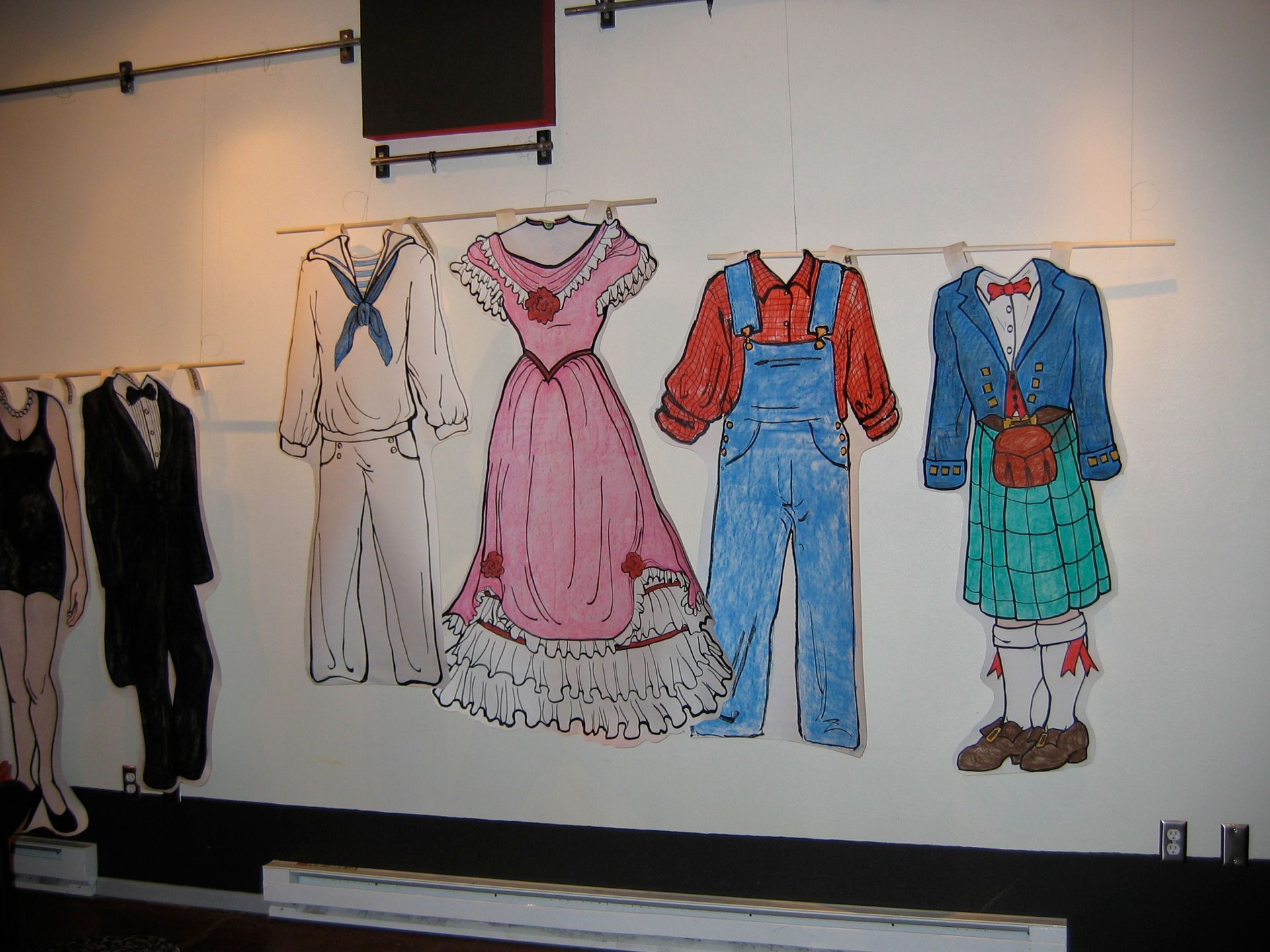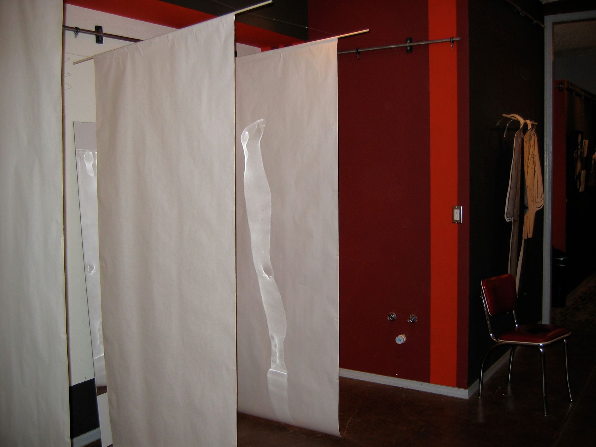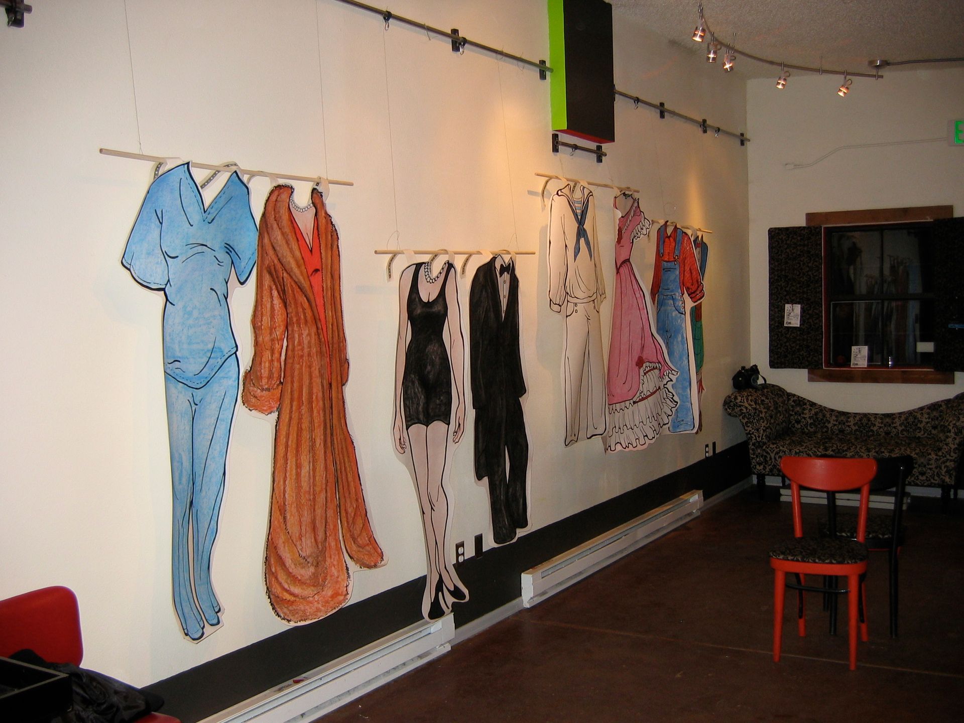 Hanging costumes, Paper, marker, drywall tape, Installation excerpt
